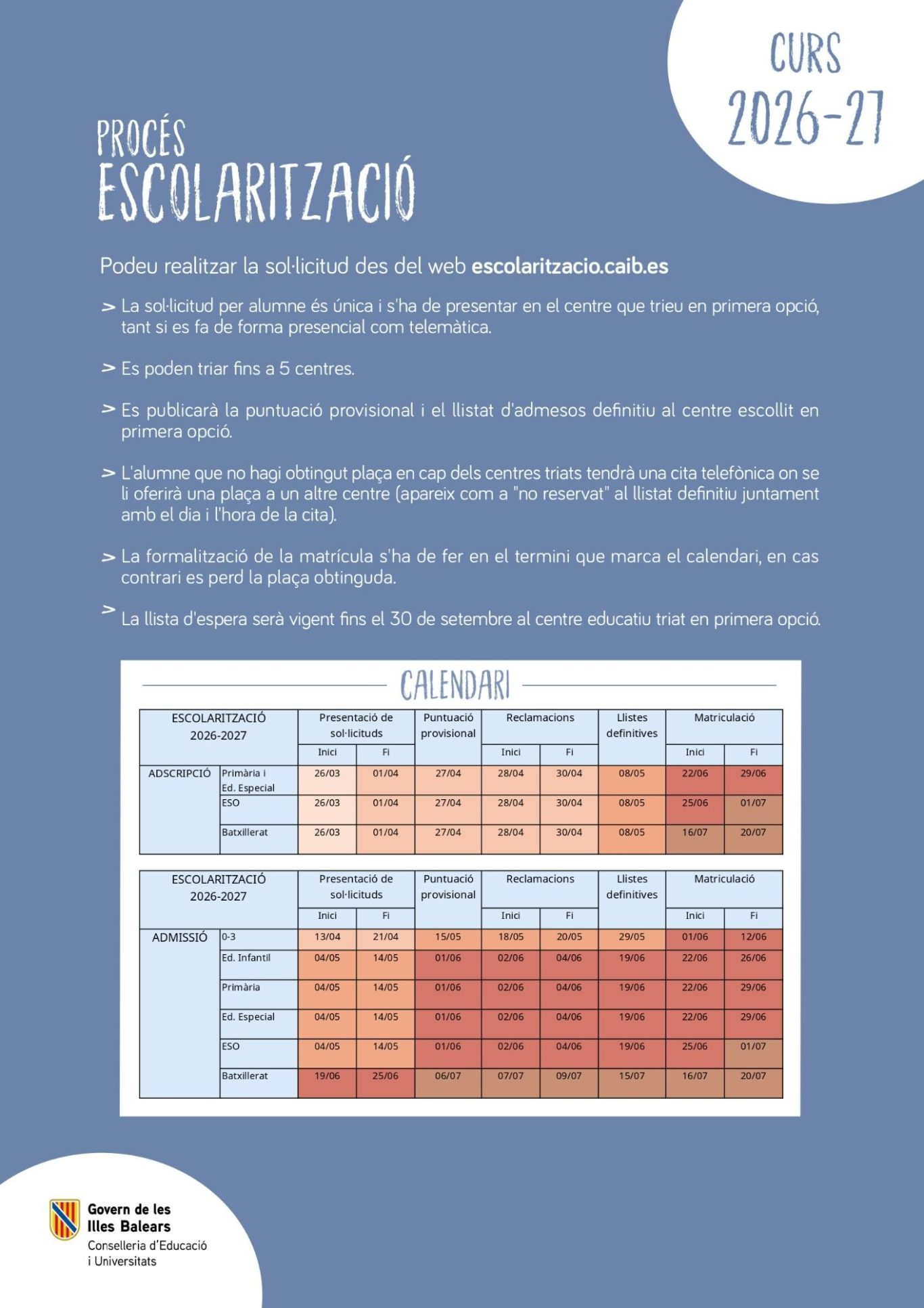 Aquí teniu informació sobre el procés d'escolarització: